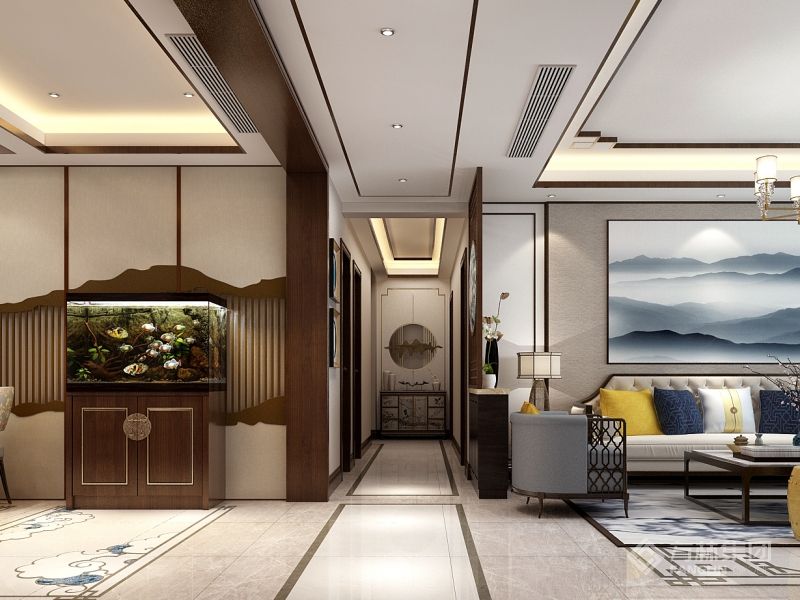 利用明清家具风格融合现代风格的硬装,采用传统木质颜色,以及软装颜色形成了新中式风格