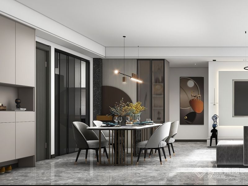 户型3室2厅一厨一卫,业主是一位男业主,平时从事IT行业,对细节把控比较到位,喜欢黑白灰。导台等极简风格。所以在设计色调上以偏商务为主,颜色没有那么冷,在进门动线上也做了调整,使进门动线不拥挤。能爆发更强的视觉张力。