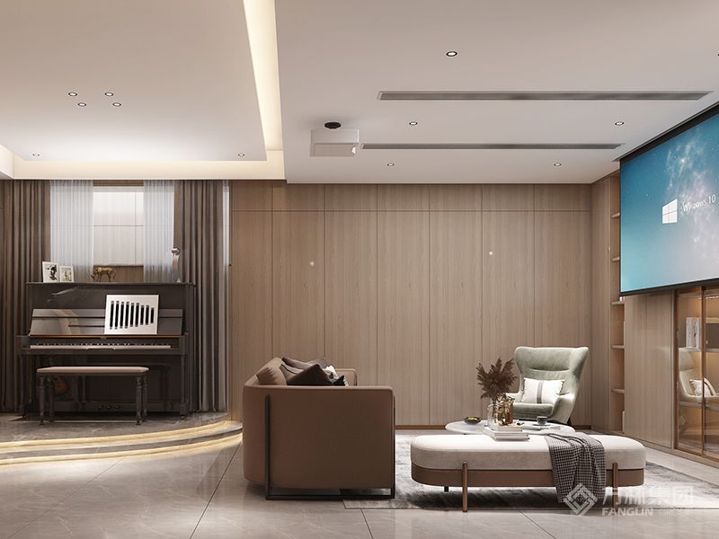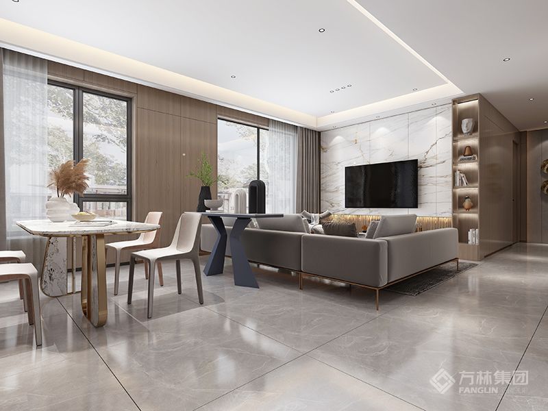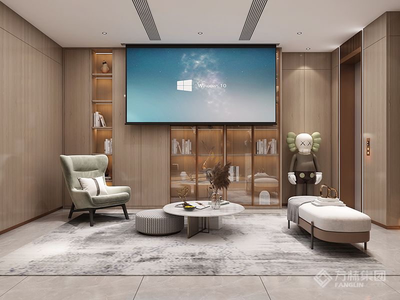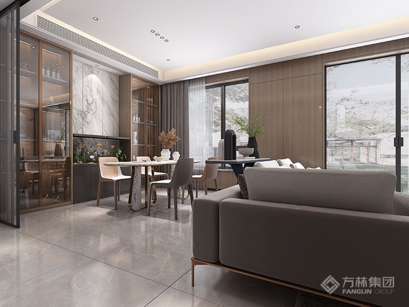 本案主要设计理念为通透+简洁+温馨感。设计主要通过大方块直线条造型开放式公区以及减法配色做到通透简洁,同时大面积使用木质的温和质感来突出温馨感