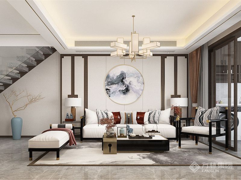 设计源于生活 全屋采用水墨画花色点缀,突出新中式风格元素,体现了家中的沉稳!