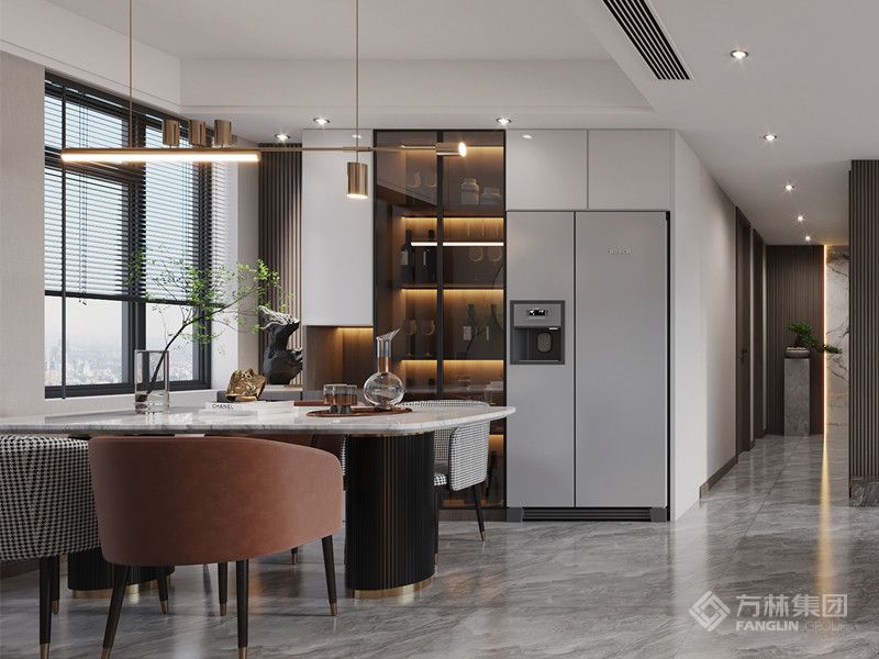 进户单独做了入户玄关,借用和卫生间的公用墙体掏出一个简易酒柜;设备平台打通做成休闲阳台加西餐厅;阳台全部纳入客厅,满足客户对大空间的需求;北次卧床头墙体向主卫平移,增加了小卧室的空间同时整化了主卫。