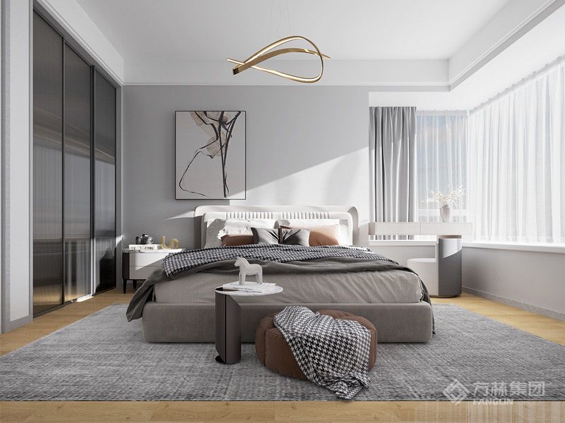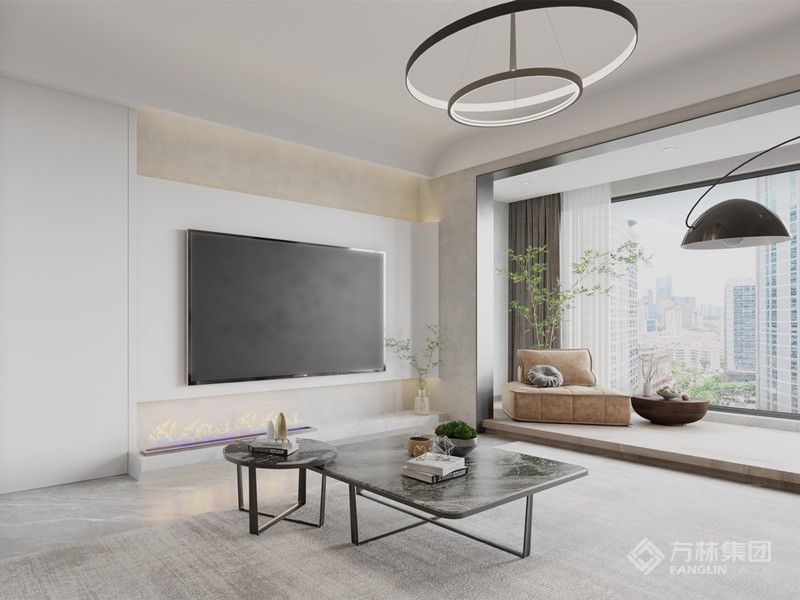 大面积留白的设计手法,给予空间更多“美”的可能性,采光充足,带来舒畅体验。相互对视的电视与沙发,以深调的稳定性把控着客厅的社交意蕴。用少许金色元素进行点缀,将艺术个性融入外在形态与内在情态。