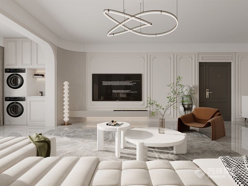 优雅的爵士白色系搭配复古气息的法式线条 丰富了层次感 这样的客厅谁不爱呢