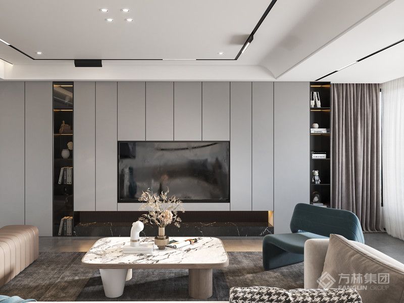 案例中把阳台规划入客厅,让公共区域更加宽广。引入自然光,让整个室内充满阳光的气息,整体柜子以极简线条为主,增加储物的时也增强了极简的艺术气息,地砖采用柔光砖,和柜子的柔和质感相互呼应,形成你中有我、我中有你的统一性符号