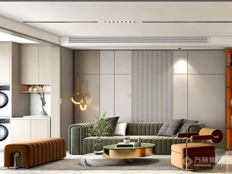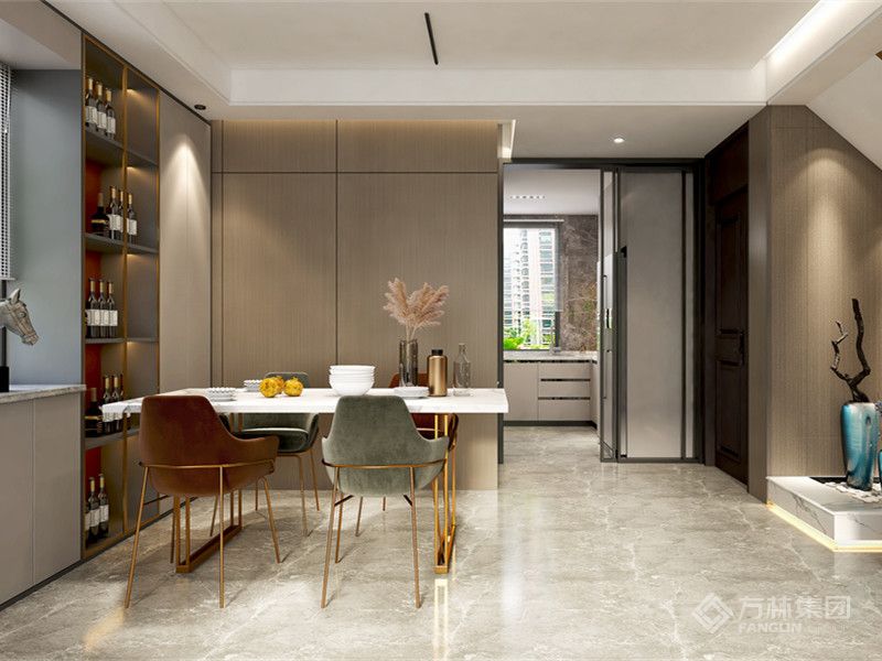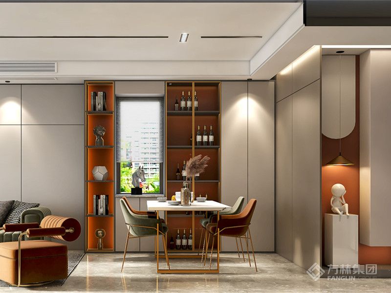 基于业主的美学品味与生活格调,设计透过奢华的质感与优雅的艺术氛围,构建当代都市生活美学。温润的木饰面、花纹大理石、精致硬朗的金属、橘色皮质软包,多种材质肌理的碰撞组合,营造时尚精致的空间格调。