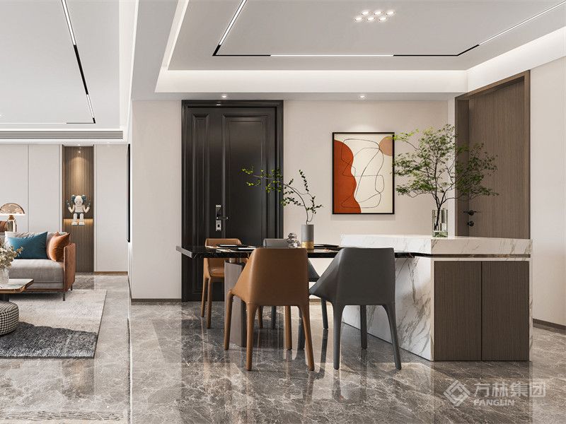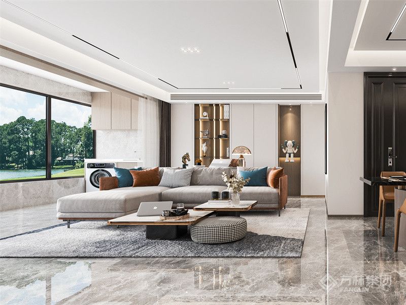 几许线条修饰,色彩明快跳动,外立面简练流通,以波涛、架廊式挑板或装修线、带、块等异型房顶为特征,立面立体层次感较强,外飘窗台外挑阳台或内置阳台,合理运用色块色带处理。
