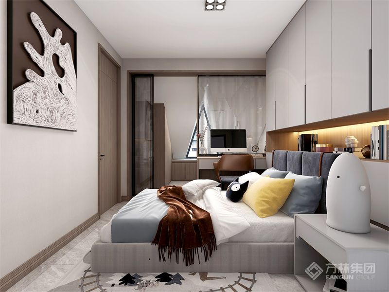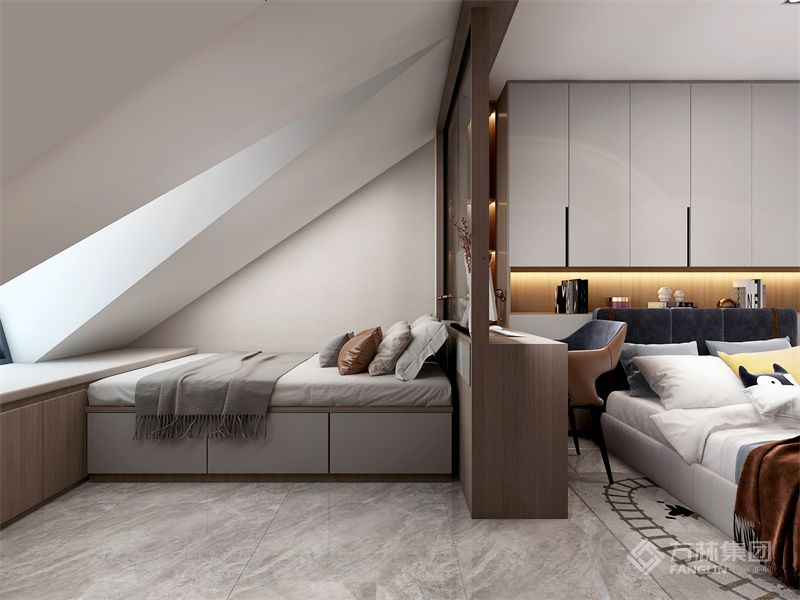 本案主要是以白色、原木色、为主,清淡的色调及护墙的装饰调节了气氛,使整个空间显得简洁明亮,温馨而舒适.简直贴近生活,自然的色调并不意味着单调无味,综合起来的私秘空间.