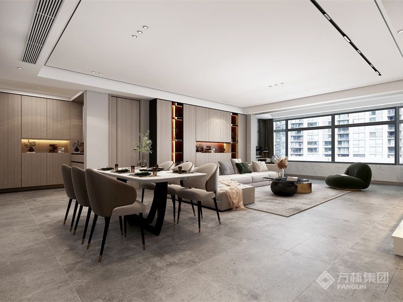 "艺术的伟大意义,基本上在于它能显示人的真正感情、内心生活的奥秘和热情的世界。自带转折形态的架构既区分了客餐厅的区域又串联起新的互动情节,凸显空间整体化的开阔气韵,虚实相接的立面,纳入令人舒心的安全感。 形成视觉中心,让纯粹的自然光与室内光一起,演绎生动曼妙的温柔故事"
