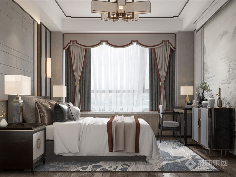 在本案在设计上营造东方的美感,更从销售的意义着眼,以高净值人群的审美价值与生活方式为出发点,摒弃常规东方元素杂糅,深度挖掘标签与符号逻辑背后的精气与神韵,重现一个新旧共鸣、人文和融的当代中国语境。本案以山水为背景将东方文化元素置入室内空间,结合山水国画元素以软硬一体化的思路融入其中诠释当代东方气质美学。呈现“温润如玉,心静如华”的东方诗意生活。大幅飘窗打通室内与户外景致的视觉联结,和煦日光,将清幽写意娓娓道来。
